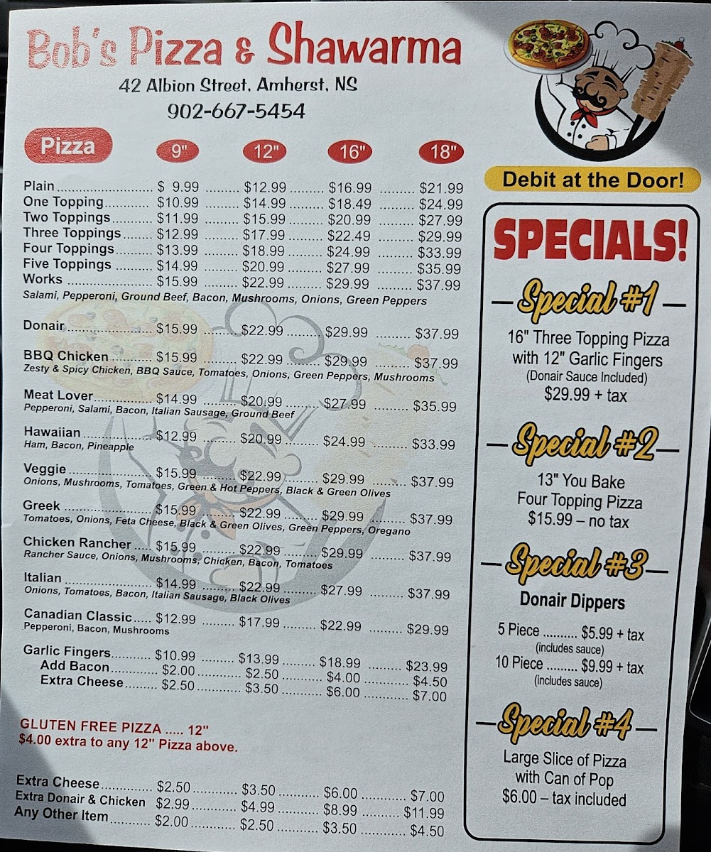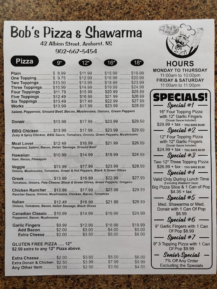 Bob's Pizza and Shawarma Menu